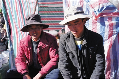 賣木碗的是兩兄弟,哥哥查司今年41歲,弟弟普布次仁30歲,木碗的制作工藝是他們家一代一代傳下來的。在他們的攤位上,除了“鎮(zhèn)店之寶”——那只大型木碗外,還擺滿了各種規(guī)格的木碗,均只涂了一層清漆,加上木碗本身的顏色,在陽光下熠熠發(fā)光。有趣的是,兩只大小規(guī)格完全相同的木碗,價格卻有天壤之別,一只要賣1000元,一只只賣500元。將兩只碗拿過來仔細(xì)看,便宜的那只非常光滑,只有一種純粹的顏色,貴的那只看起來有許許多多的小坑和斑點(diǎn)。據(jù)介紹,這些斑點(diǎn)和小坑,都是木材本身的紋理,價格也正是貴在這里。