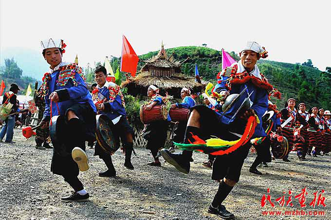 德昂族中若一家有人病故老死,家屬即在門外對天鳴放三槍,寨里的鄉(xiāng)親、鄰里聞訊,便背著米、提著菜、拿著肉...