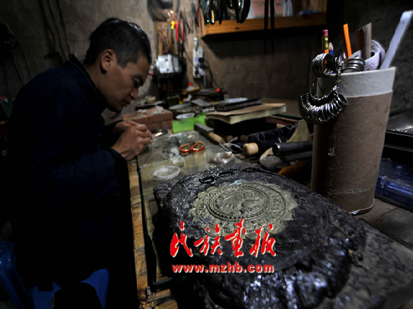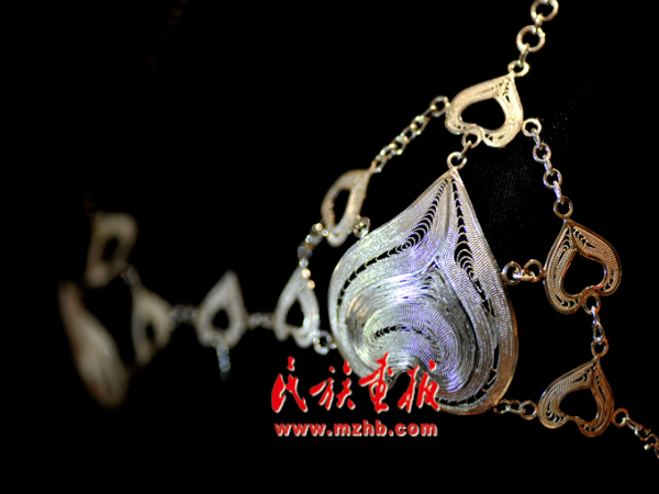 走進龍?zhí)柕拿缱邈y飾傳承工作室,一件件銀飾讓人目不暇接,嘆為觀止??此破掌胀ㄍǖ你y片、銀條,在他的手里富有生命力的藝術作品,每個制作細節(jié)和過程都透著一股精致。