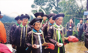 據(jù)介紹,舉辦牯藏節(jié)是為了給苗族人家?guī)硇腋!j舨毓?jié)第一天,牯藏頭(由村里5位精干的已婚男子組成)在村中挑選連同自己在內(nèi)的12名德高望重的長(zhǎng)老,組成一支祭祀隊(duì)伍,安排祭祖。他們用新砍伐的木竹編織成坐榻,讓6個(gè)年輕人坐于其上,30余人抬著他們,前面長(zhǎng)老開道,吹起祭祖蘆笙,跳起祭祖舞,抬著祭祖飯,向祭祖堂緩緩走去,進(jìn)行殺牛豬、祭奠等。