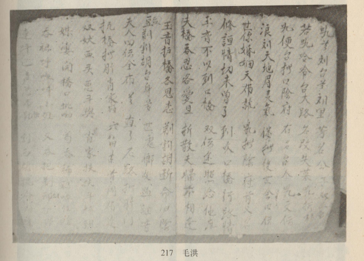 廣西方塊壯字七言故事詩歌手抄本。無寫作年代及作者姓名。據(jù)老人推測,此書傳抄于清咸豐之前。本世紀(jì)70年代收集于上林縣。寬19厘米,高22.7厘米,厚1厘米,共36頁,878行。內(nèi)容敘述前朝六部尚書張某與翰林毛某訂親,后因毛某家破人亡,張家毀約,欲將其女張玉音另嫁有財(cái)勢的肖家。玉音以理抗婚,愿嫁幼時之友毛洪,慕其人窮志不窮,然肖家花轎已到,她無奈蹬轎,在轎內(nèi)自盡身亡。本詩歌對研究古代壯族民間社會風(fēng)情、婚姻習(xí)俗和倫理觀念有重要的價值?,F(xiàn)為蘭多民個人保存。