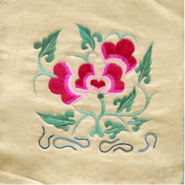 傳統(tǒng)意義上的滿族刺繡源于民間,流行于遼寧、吉林、黑龍江等滿族聚集地,屬于一種民間手工技藝。滿族民間刺繡,俗稱“針繡”、“扎花”、“繡花”,具有強烈的民族、地域特色,其造型夸張、粗獷、拙樸,色彩艷麗,冷暖對比強烈,構(gòu)圖細(xì)膩,情感樸實。