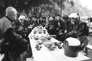 秋收開鐮“祭薩”活動上,當(dāng)?shù)囟弊迦罕妵艋鸩雀杼?/span>