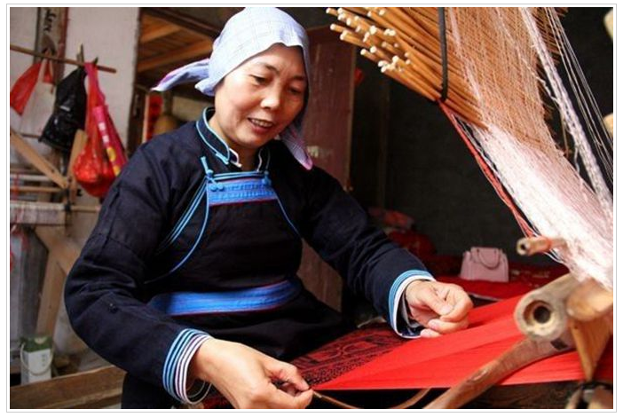 侗錦古稱“綸織”,系侗族女性世代相傳的純手工織物,至今有2000多年歷史。因獨(dú)特的紡織工藝、豐富深刻的文化內(nèi)涵、高雅凝重的品質(zhì)和鮮明的民族風(fēng)格,侗錦成為中國(guó)著名織錦之一。位于湘、桂、黔三省(區(qū))交界處的湖南通道侗族自治縣及周邊地區(qū),是侗錦織造技藝的主要分布區(qū)。