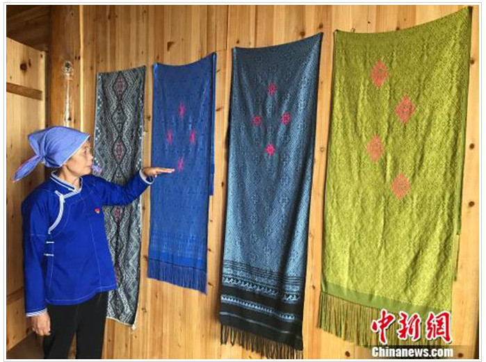 粟田梅說(shuō),在過去,當(dāng)?shù)厝丝棾龅囊黄テザ卞\多用于日常穿戴,且品種比較單一,并未進(jìn)入市場(chǎng)流通。加之農(nóng)村青壯年不斷外出務(wù)工,侗錦曾一度面臨無(wú)人傳承的窘境。