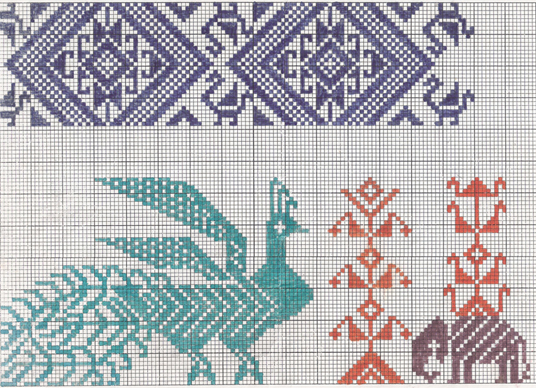作畫的第一步是經(jīng)營(yíng)位置。有的地區(qū)是照著紙剪的花樣確定大輪廓,然后畫出各種圖案花紋。浸染的方法,是把畫好的蠟片放在藍(lán)靛染缸里,一般每一件需浸泡五、六天。第一次浸泡后取出晾干,便得淺藍(lán)色。再放入浸泡數(shù)次,便得深藍(lán)色。如果需要在同一織物上出現(xiàn)深淺兩色的圖案,便在第一次浸泡后,在淺藍(lán)色上再點(diǎn)繪蠟花浸染,染成以后即現(xiàn)出深淺兩種花紋。當(dāng)蠟片放進(jìn)染缸浸染時(shí),有些“蠟封”因折疊而損裂,于是便產(chǎn)生天然的裂紋,一般稱為“冰紋”。有時(shí)也根據(jù)需要做出“冰紋”。這種“冰紋”往往會(huì)使蠟染圖案更加層次豐富,具有自然別致的風(fēng)味。蠟染一般都是藍(lán)白兩色。制作彩色蠟染有兩種方法:一種是先在白布上畫出彩色圖案,然后把它“蠟封”起來(lái),浸染后便現(xiàn)出彩色圖案;另一種方法是按一般蠟染的方法漂凈晾干以后,再在白色的地方填上色彩。蠟染所用的彩色染料,是用楊梅汁染紅色,黃梔子染黃色。