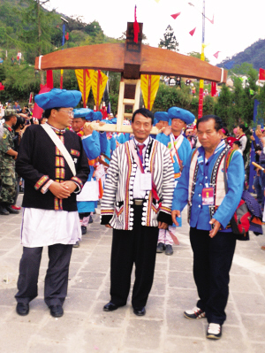 一場盛大的傈僳族節(jié)日聚會,背后的弩弓形象顯而易見。