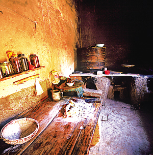 居室內(nèi)紅箱、畫(huà)柜耀人奪目,墻上掛有阿拉伯文字的對(duì)聯(lián)。屋檐下的臺(tái)階上,始終放著一個(gè)隨時(shí)洗手洗臉用的“湯瓶”,既節(jié)約又清潔。東西偏屋為晚輩居住,南邊為牲畜和草料房。東鄉(xiāng)人認(rèn)為家居四方平正,財(cái)源廣,子孫榮,門(mén)庭興旺。廚房是獨(dú)立的,砌鍋灶,有大案板,方便以面食為主的飲食習(xí)慣。
