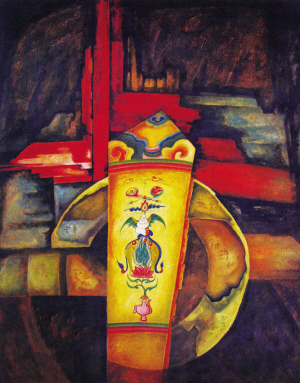 記者:你這次展出的作品都是以比較抽象的手法在表現(xiàn)東巴文化,以后在題材和手法上會不會有一些轉(zhuǎn)變?
