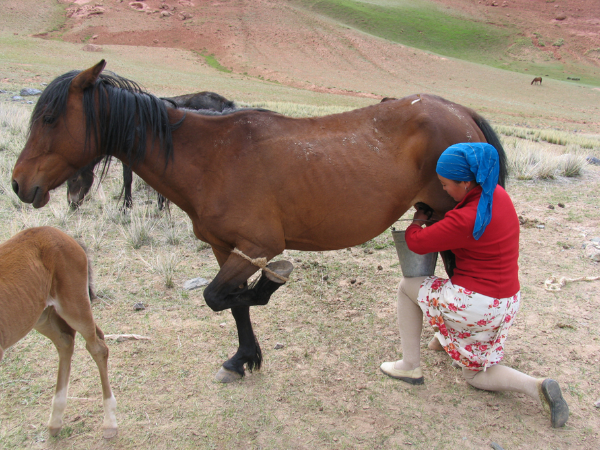 柯爾克孜人民的日常飲食來源之一——馬奶(劉軍攝)