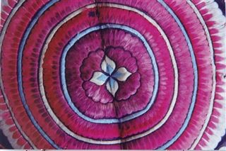 另外,土族服飾的演變,還源于關于丹陽公主化為金色鳳凰的傳說,人們?yōu)榧o念她而穿鳳凰羽毛一般華麗的服飾。因而,土族婦女至今仍然保存著身穿綠色夾襖,下穿緋紅色百褶裙,腳穿繡花翹尖鞋的裝束。裙子是三川婦女獨有的服飾之一,土族語稱之為“禾兒莫”。根據(jù)著裝者的年齡大小,裙子有鮮紅、粉紅、紫紅三種,材質多選用棉布、綢緞,為了耐臟,下擺處還鑲有一圈寬25厘米的黑布。黑布與紅布的連接處鑲有兩道花邊,使紅色百褶裙更為好看。過去,婦女除了下地干活和下廚外,都必須穿裙子,否則會被視為無禮。