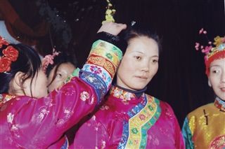 到了預定的時辰,新娘該“上馬”了。阿姑們將娶親人的馬鞍等物藏起來,并圍著馬頭唱起了《上馬曲》,悲傷的詞曲中阿姑們向即將出嫁的新娘一一道別,對娶親者提出種種要求,只有具備這些條件,新娘才能上馬: