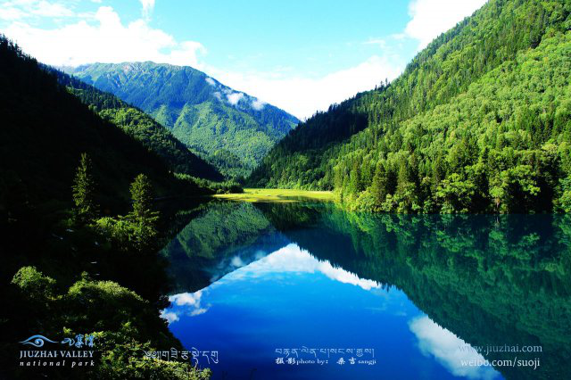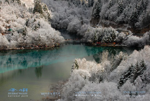 九寨溝位于四川省西北部岷山山脈南段的阿壩藏族羌族自治州九寨溝縣漳扎鎮(zhèn)境內(nèi),年均氣溫6—14℃度,冬無嚴(yán)寒,夏季涼爽,四季景色各異:仲春樹綠花艷,盛夏幽湖翠山,金秋盡染山林,隆冬冰塑自然。以翠湖、疊瀑、彩林、雪峰、藏情、藍(lán)冰“六絕”著稱于世。