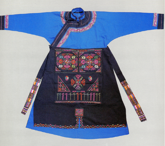 羌族婦女與男子衣服最大的不同之處是領(lǐng)邊、袖口、腰帶和鞋子上常挑繡有幾何花紋圖案,衣領(lǐng)上鑲有一排小的梅花形圖案銀飾。挑繡的圖案多反映現(xiàn)實(shí)生活中的自然景象,如植物中的牡丹、梅花,動(dòng)物中的喜鵲、蝴蝶、羊等。所挑繡之景物,無(wú)不栩栩如生,內(nèi)容多含吉祥如意和對(duì)幸福生活的憧憬和渴望。