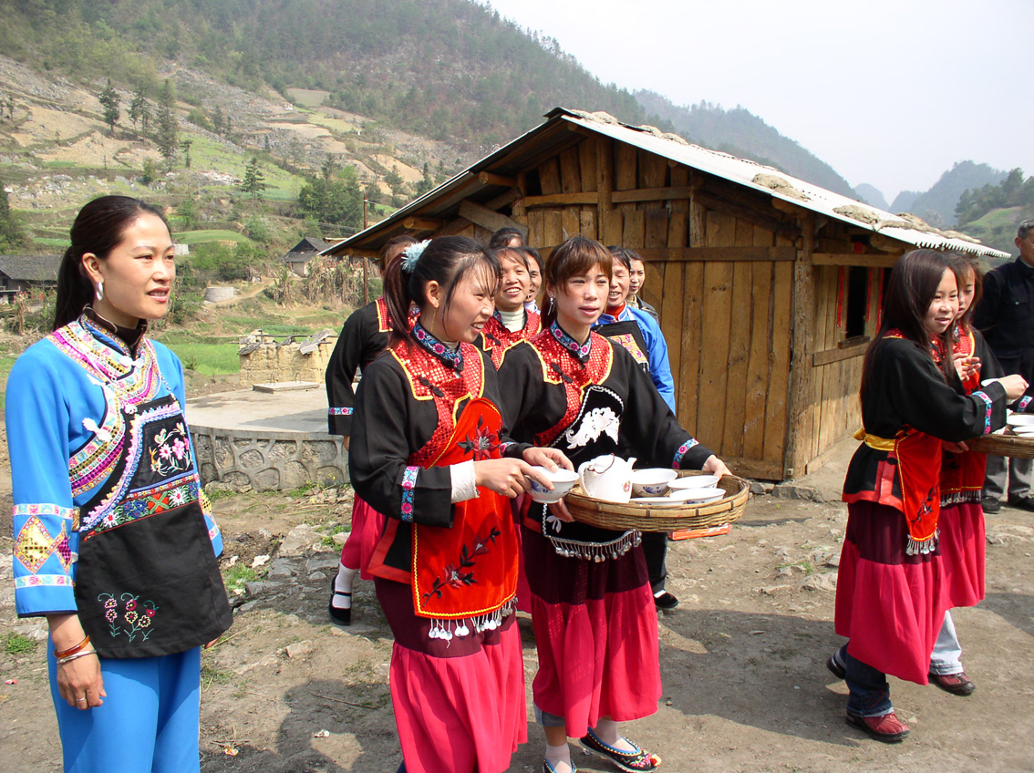 毛南族沒有鬧洞房的習(xí)慣。婚禮當(dāng)晚,新娘和伴娘們同住新房。房里不鋪合歡床,而是鋪兩張床,稱為“鴛鴦床”。女的用深藍(lán)色蚊帳、被單,男的用白色蚊帳、印花被單以示區(qū)別。過去,富有人家甚至還修建“鴛鴦房”,中間開方便門。據(jù)傳,此俗源自洪水神話中盤、古兄妹羞于結(jié)婚的傳說,爾后代代傳之?;槎Y的第二天中午,在新郎家舉行開被儀式,當(dāng)眾展示嫁妝。由新郎家兩位兒女雙全的姑嫂伯娘來開被,每打開一床被,男女歌師各唱一《開被歌》,男的贊揚(yáng),女的謙讓,娓娓道來。