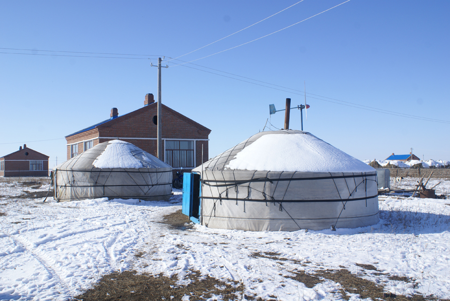 牧區(qū)主要的住房是“蒙古包”,鄂溫克人稱住房為“糾”,分別有“奧布海糾”和“俄儒格糾”。前者是一種形式簡陋的蒙古包式的住房,一般為打獵、拉腳、打羊草時的臨時住房,或?yàn)榻?jīng)濟(jì)困難人家迫不得已時所居住。建造“奧布海糾”需要二三十根榆木桿子,頂端用繩子結(jié)在一起,下端插進(jìn)地里形成“糾”的架,用葦子搭蓋出呈傘狀的棚房。這種房早期沒有定形的門,一般向南開一小口出入,僅以葦捆及氈子作門。后來“奧布?!币惭b置頂孔,材料是榆木和柳木,鑿出現(xiàn)代蒙古包的包頂。圓頂?shù)倪吘壣香@有小孔,以便插進(jìn)木桿,成錐形。同時用葦子搭蓋成屋,冬季門里掛上一層氈子防寒。“俄儒格糾”也就是現(xiàn)在所稱的“蒙古包”,因?yàn)閳A孔屋頂而得名。蒙古包的木架是用上、中、下三節(jié)結(jié)構(gòu)組成而成,外面的擋簾根據(jù)季節(jié)不同而樣式不同,夏季采用柳條串成簾圍在包外,用蘆葦串成傘形簾,蓋在上面擋雨。冬季則用帆布外加氈子圍嚴(yán),以保包內(nèi)溫度,近年冬季在包內(nèi)床下搭熱炕。蒙古包一般選在陽坡、地勢較高、用水方便、靠近牧場的地方搭蓋。在搭蓋蒙古包時,雨季要搭得斜度大些,以防漏雨;冬季為免受強(qiáng)風(fēng)吹襲,則搭建的斜度小。蒙古包內(nèi)置有床、爐子,有木箱柜、桌子等用具。近年來,隨著經(jīng)濟(jì)的發(fā)展,住土房、磚房的越來越多。值得一提的是鄂溫克族的牧民雖無固定住所,卻有固定建筑,那就是他們的倉庫。鄂溫克族的倉庫極為奇特:先砍去相鄰兩棵大樹的樹梢,作為柱子,然后用木頭壘出一間懸空的倉庫,地上斜豎一根砍有階梯的木柱為梯。倉庫中存放食品、獵物、衣服、用具等。牧民從不上鎖,其他獵人可任意取用,事后如數(shù)歸還即可。
