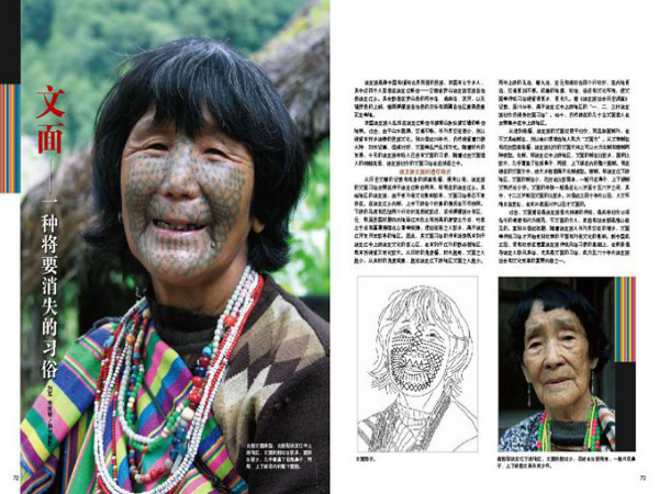 我國獨龍族人生活在獨龍江峽谷與橫斷山脈縱橫交錯的峽谷地帶。過去,由于山水阻隔,交通不暢,與外界交往甚少,所以保留有許多獨特的民族文化。到20世紀50年代,仍然保留著刀耕火種、刻木記事、結(jié)繩計時、文面等生產(chǎn)生活方式。隨著時代的發(fā)展,今天的獨龍族年輕人已沒有文面的習(xí)慣,隨著過去文面老人的相繼離世,獨龍族婦女的文面習(xí)俗也在消逝之中。
