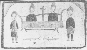 鄂倫春族獵手彪悍、好客,他們專門為我做了餅。這個餅可不同尋常,面是怎么和的呢?是在馬鞍上弄的,水是冰化成的。面和好后,放在火堆里烤熟,是真正的“燒餅”。用什么煮肉呢?用木頭支起一個大三腳架,架子頂上吊下來兩股繩,掛著鐵鍋。這種鐵吊鍋有雙耳,裝著木把手,與一般鍋不同的是,它的鍋耳不朝外而是朝內(nèi),木把手在鍋內(nèi)上方,這樣再大的火也燒不著。我想到,在江西曾出土內(nèi)耳陶鍋器,日本也有,可見這類器皿都是用來吊在篝火上燒水煮飯的。