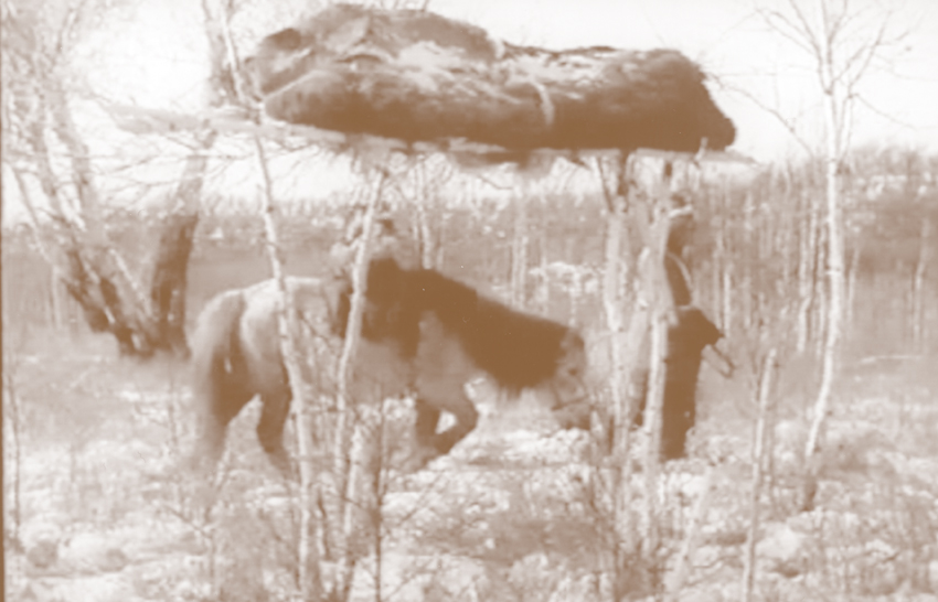 尸體入棺時(shí)不能見(jiàn)陽(yáng)光,傳說(shuō)尸體若見(jiàn)陽(yáng)光,死者的靈魂就會(huì)從陰間返還陽(yáng)間。死者入棺后,要把他生前用過(guò)的碗筷等餐具放在他左手旁,還有兩個(gè)敞著口的米、面口袋。右手旁放一些生產(chǎn)工具,男人放獵刀、弓箭等,女人放熟皮用具和針線盒等。