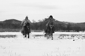 進(jìn)山狩獵的準(zhǔn)備活動從凌晨就開始進(jìn)行了,繩、皮套和馬腿上的裹布都要弄好,政府下發(fā)的獵槍也要擦得錚亮,黎明前,還要給馬喂一桶溫?zé)岬亩癸炈|方現(xiàn)出魚肚白不久,一抹紅霞染紅了白樺林,獵人騎著馬,馱著睡袋出發(fā)了。作為獵手,張林江出了村依然先往東走,那里是祖先指引的方向,還有山神白洽娜在等待。風(fēng),刮起樹上和地上的白雪,興安嶺一片蒼茫。
