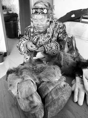 葛長云是制作狍皮手工藝品的高手。 資料圖片