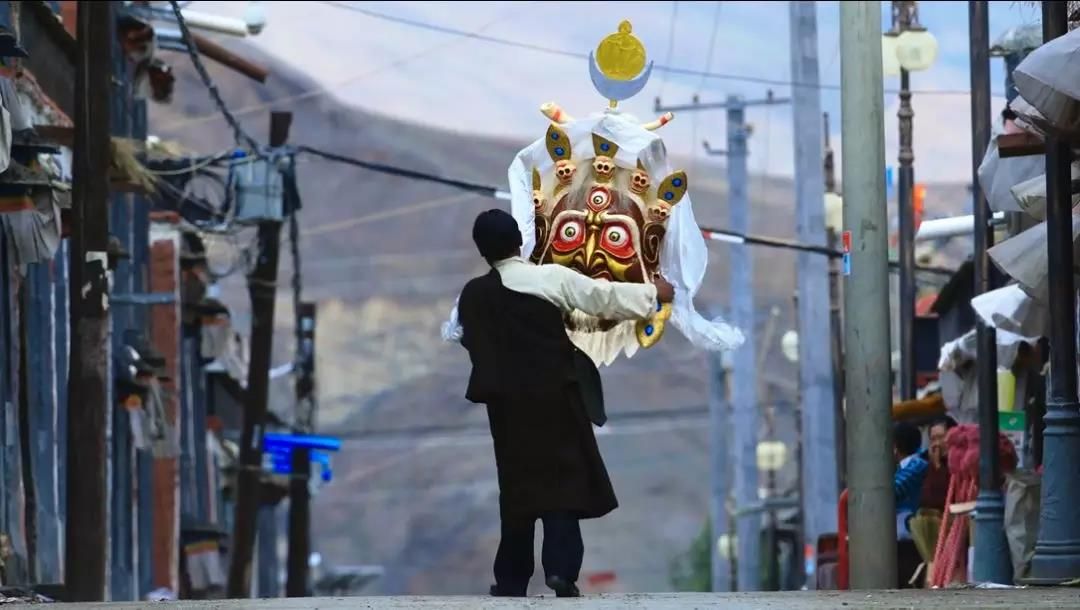 他扛著面具走出了家門(mén),向薩迦寺的方向走去。