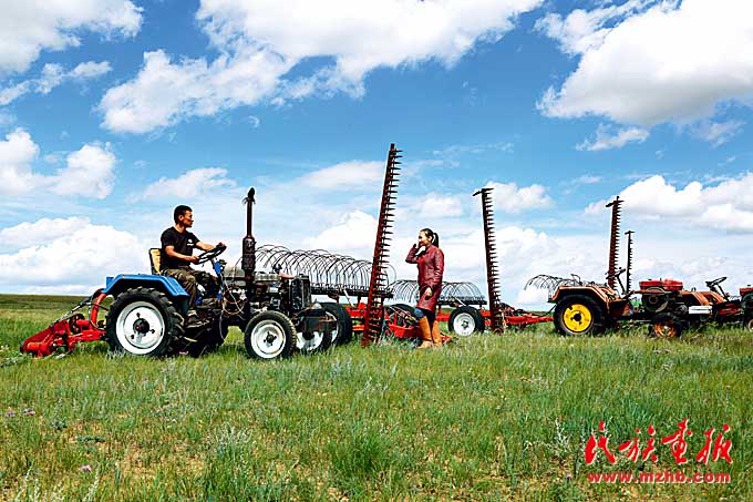 錫林郭勒盟草業(yè)合作社利用興邊富民行動資金購買打草機等設備。