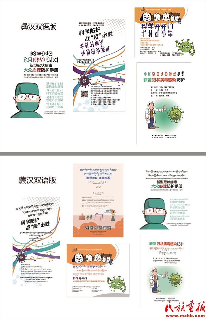 四川民族出版社出版的《新型冠狀病毒感染防護(hù)》(藏漢雙語(yǔ)、彝漢雙語(yǔ))紙質(zhì)圖書。