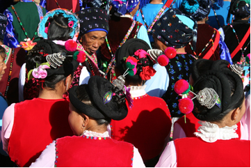 大理青山成年禮上的白族少女頭飾