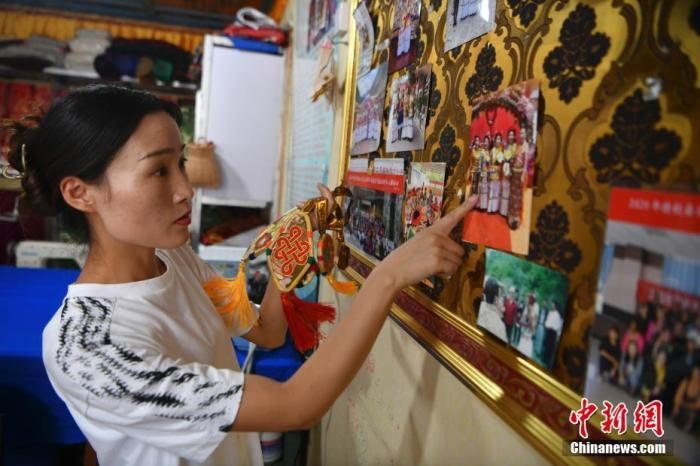 7月22日,提美的女兒邊宗向記者介紹她制作的配飾。 中新社記者 劉冉陽 攝