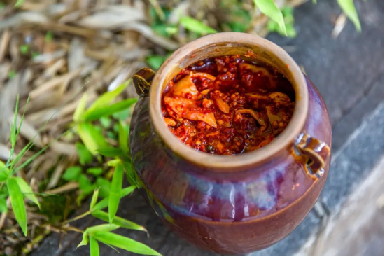關(guān)于鶴慶的滋味,最深刻的記憶還要數(shù)那一小碟紅亮鮮香的豬肝胙。豬肝胙是用新鮮的內(nèi)臟、排骨佐以食鹽、花椒、辣椒、八角、草果等眾多香辛料研制而成的鶴慶特色美食。腌制好的豬肝胙,開(kāi)壇即可聞到濃重的香氣撲鼻而來(lái),蒸熟下飯,炒菜提鮮,豬肝胙濃郁的滋味都不會(huì)令人失望。