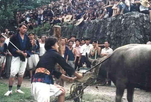 砍牛、打銅鼓是白褲瑤為死者舉行葬禮的儀式,整個葬禮悲壯、肅穆,祭祀場面氣氛凝重莊嚴(yán),這種傳統(tǒng)送喪習(xí)俗,既是表達(dá)遺屬對死者的悼念,也是一項眾人共同的祭祖活動,銅鼓、皮鼓,是葬禮活動的主要打擊樂器。