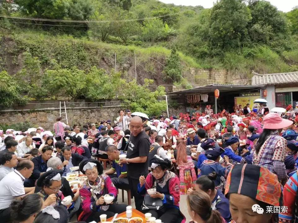 祭祖大典,禮畢。活動(dòng)的全體彝胞統(tǒng)一進(jìn)行就餐,各地彝胞唱起特色的彝語歌曲,祝福四方的彝胞。