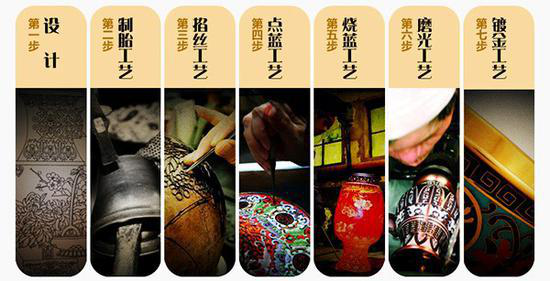 景泰藍(lán)又名“銅胎掐絲琺瑯”,是一種以紫銅作坯,以細(xì)薄的金線或銅絲掐成各種花紋,中充琺瑯釉,燒制而成的瑰麗多彩的工藝美術(shù)品。