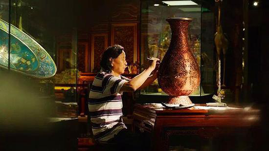 100多道工序,上百次的打磨,一次次的燒結(jié)鍍金,每一個步驟都需要手藝精湛的藝人獨立承擔(dān),清末時就有詩詞贊道,“就中絕技高天下,壓倒五洲景泰藍(lán)?!?/p>
