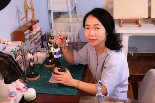 讓人驚艷的,還原度無比高的作品人物服飾,這其中還有冰冰媽媽的一些的建議呢,雕雕琢琢,便有了生動(dòng)形象的這些精致作品。聊起整個(gè)創(chuàng)作過程的冰冰,笑盈盈地說:創(chuàng)作粘土惠女作品,是一件讓我感到滿足和幸福的事情。之后也會(huì)持續(xù)創(chuàng)新,精益求精地進(jìn)行創(chuàng)作。