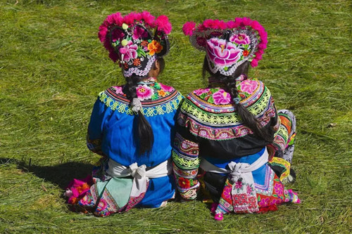 在楚雄,圍腰在彝家服飾中扮演了很重要的角色。彝族婦女的圍腰,在日常生活和生產(chǎn)中具有保暖、兜攏東西、占卜的實用功能。