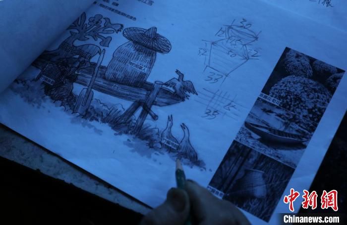 黃大青正在用鉛筆做設(shè)計圖紙 吳建勛 攝