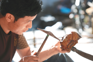 為了打開市場,次嘎跑到寺廟里毛遂自薦,攬來一些打造門鈸、修復器皿和小佛像的活兒,慢慢地開始得到了一些認可,數(shù)量增加,接單也多了。