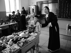 圖為孩子們在上傳承民族文化特色展示課。奶茶原為中國北方游牧民族的日常飲品,至今已有千年歷史,蒙古奶茶至今仍然是日常飲用及待客的必備飲料。陳巴爾虎旗民族小學(xué)開展了具有濃濃的民族風(fēng)味的實(shí)踐活動(dòng)課,通過一起熬制奶茶,學(xué)生和家長、老師們都受益匪淺。