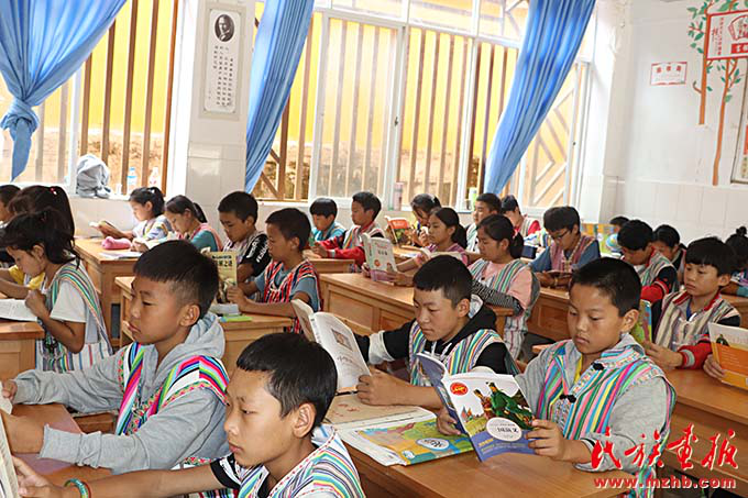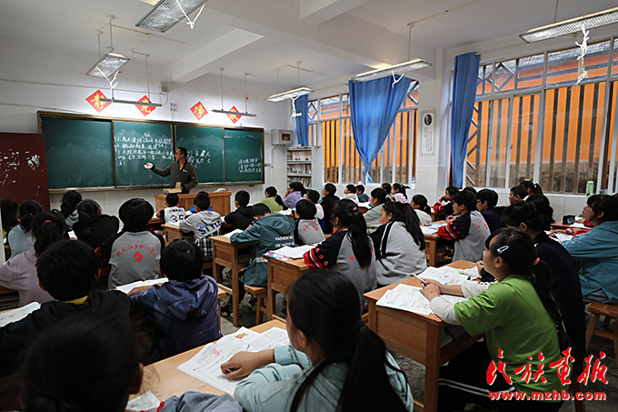 “對(duì)于一個(gè)在北平住慣的人,像我,冬天要是不刮大風(fēng),便覺(jué)得是奇跡;濟(jì)南的冬天是沒(méi)有風(fēng)聲的?!弊哌M(jìn)學(xué)校初中部,朗朗書(shū)聲立即傳入耳中,七年級(jí)一班學(xué)生正在老師的帶領(lǐng)下大聲朗讀我國(guó)著名作家、劇作家、小說(shuō)家老舍創(chuàng)作的散文《濟(jì)南的冬天》。獨(dú)龍江九年一貫制學(xué)校校長(zhǎng)楊四洋對(duì)記者說(shuō):“習(xí)近平總書(shū)記曾深刻指出:少數(shù)民族學(xué)好國(guó)家通用語(yǔ)言,對(duì)就業(yè)、接受現(xiàn)代科學(xué)文化知識(shí)、融入社會(huì)都有利。所以我們學(xué)校從成立之初就開(kāi)始推行國(guó)家通用語(yǔ)言文字教育,如今每一個(gè)在校學(xué)生都能講出一口流利的普通話。獨(dú)龍族聚居地地處深山峽谷,自然環(huán)境惡劣。學(xué)好國(guó)家通用語(yǔ)言文字對(duì)我們的孩子尤為重要,這樣才能更好地建立與外界溝通的橋梁?!?/p>