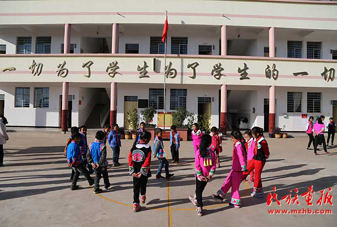 臘灣民族小學是牟定縣海拔最高的小學,這里環(huán)境艱苦,但是來這里的老師都堅持了下來。明艷紅老師2011年從楚雄師范學院畢業(yè)后,來到了臘灣民族小學。6年時間彈指一揮,她沒有被艱苦閉塞的環(huán)境嚇倒,反而更加熱愛這份工作?,F(xiàn)在,她帶五年級數(shù)學課。她說:“在國家對民族教育的大力支持下,臘灣民族小學的辦學條件有了很大改善,給我們老師蓋了單身宿舍,現(xiàn)在吃的、住的都很好。我們的工資還比縣里條件好的學校高出1000多元?!痹诓稍L中我們得知,李有順老師原來是臘灣民族小學的老校長,作為本地人,他在臘灣民族小學工作快30年了,校長就干了17年。他說:“現(xiàn)在歲數(shù)大了,精力不夠充沛了,校長得讓年輕人干,這樣才能保持辦學有創(chuàng)新?!崩钣许槹研iL一職傳遞給了30多歲的李發(fā)庭。去年剛剛接過“接力棒”的李發(fā)庭表示:“壓力很大,但一定不能辜負鄉(xiāng)親們和老校長的期望?!?/p>