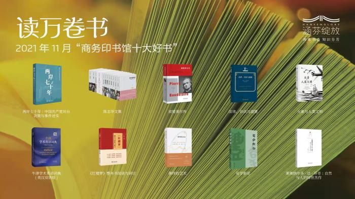2021年11月“商務(wù)印書館十大好書”8日晚在直播間發(fā)布,《兩岸七十年:中國共產(chǎn)黨對臺決策與事件述實》《陳志華文集》《波德萊爾傳》《法律、自由與道德》《元素與人類文明》《牛津?qū)W術(shù)英語詞典(英漢雙語版)》《<紅樓夢>整本書閱讀與研討》《善終的藝術(shù):應(yīng)對衰老、病痛、死亡的實用指南》《荀學(xué)新論》《萊奧納爾多·達(dá)·芬奇:自然與人的驚世杰作》入選。