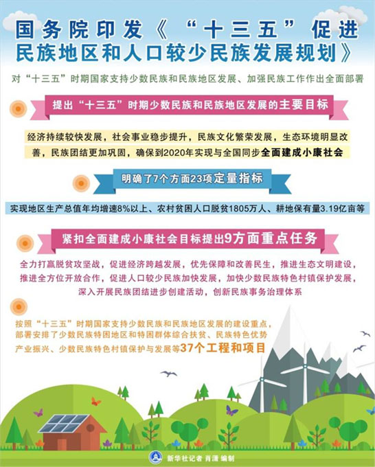 圖表:國務(wù)院印發(fā)《“十三五”促進(jìn)民族地區(qū)和人口較少民族發(fā)展規(guī)劃》(新華社)