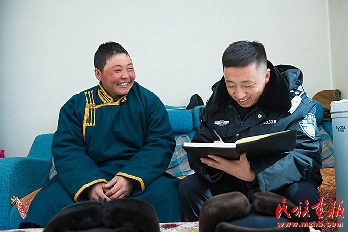 無論在哪個(gè)邊境派出所,敖日奇朗都跟牧民們以心交心,以誠相待,成為好朋友。如今,敖日奇朗在諾門罕布日德邊防派出所工作五年了,也常有新寶力格邊防派出所轄區(qū)牧民打來電話,咨詢法律問題,他每回都耐心地解答。“牧民朋友們的純真質(zhì)樸平復(fù)了我剛到這里時(shí)躁動的心。邊境派出所是邊民生命財(cái)產(chǎn)安全的保障,隨時(shí)為轄區(qū)群眾牽線搭橋辦事。邊防警察與牧民的良好互動,會在關(guān)鍵時(shí)刻發(fā)揮重要作用,這恰恰也是我們開展走訪工作的意義所在?!卑饺掌胬矢锌?。