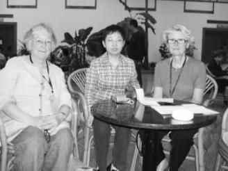 束錫紅(中)與英、法國家圖書館負(fù)責(zé)人簽訂出版海外文獻(xiàn)協(xié)議。受訪者供圖