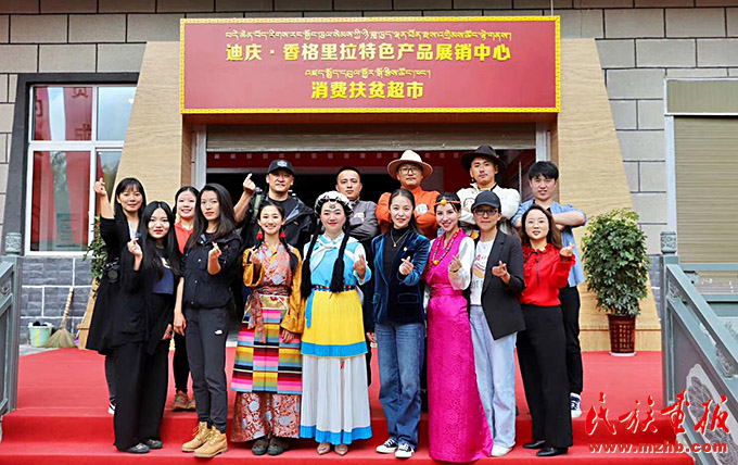 2020年7月,何永群(前左四)在迪慶·香格里拉特色產(chǎn)品展銷(xiāo)中心消費(fèi)扶貧超市參加活動(dòng)。