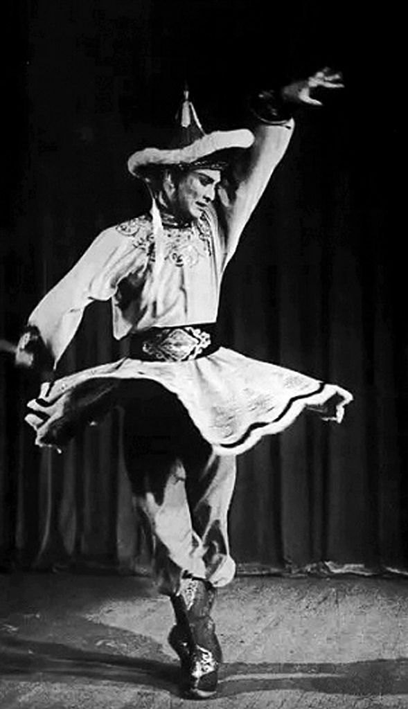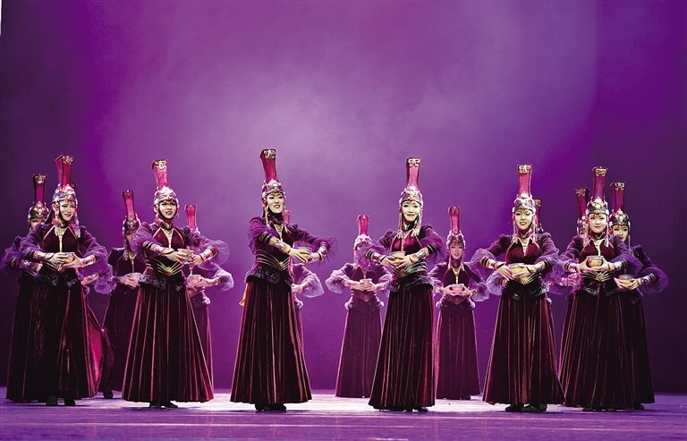 蒙古舞由民間走向劇場,始于1946年吳曉邦先生創(chuàng)作女子雙人舞《希望》和群舞《民族之路》。賈作光則將蒙古舞的發(fā)展推向高潮。深入草原,體驗游牧生活,賈作光不斷挖掘和整理傳統(tǒng)文化資源,蒙古族舞蹈經(jīng)典相繼問世——遼闊的草原上,一位身著傳統(tǒng)民族長服的女子頭頂疊碗,雙手持盅,英姿妖嬈款款起舞,動人的《盅碗舞》渲染出牧民迎來新生活的喜悅和歡樂;提煉宗教舞蹈精華,提取擠奶、射箭等生活動態(tài)元素,蒙古族干練灑脫的民族氣質在《鄂爾多斯舞》中盡顯……