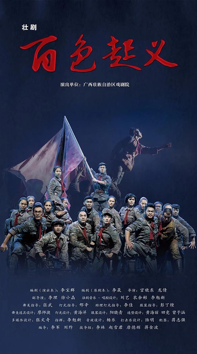 壯劇《百色起義》以1929年發(fā)生在廣西的百色起義為素材創(chuàng)作而成,以百色起義的籌備、舉行為主線,分為初到南寧、群雄聚會(huì)、英靈歌唱、百色大地等部分,通過(guò)獨(dú)具廣西特色的壯劇方式來(lái)表現(xiàn)紅色歷史題材,塑造了鄧小平、李明瑞、韋拔群等眾多百色起義指戰(zhàn)員形象,謳歌了舍生忘死、救國(guó)救民的革命先烈和為中國(guó)革命付出巨大犧牲的壯鄉(xiāng)人民。