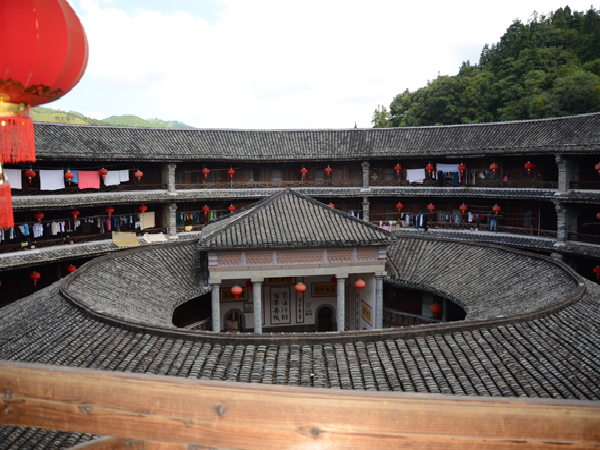 1995年它的建筑模型與北京天壇作為中國(guó)南北圓形建筑代表參加了美國(guó)落杉磯世界建筑展覽會(huì),引起了轟動(dòng),被譽(yù)為“東方建筑明珠”。 客家土樓建筑閃耀著客家人的智慧,它具有防震、防火、防御多種功能,通風(fēng)和采光良好,而且冬暖夏涼。它的結(jié)構(gòu)還體現(xiàn)了客家人世代相傳的團(tuán)結(jié)友愛(ài)傳統(tǒng)。試想幾百人住在同一幢大屋內(nèi)朝夕相處,和睦共居當(dāng)然是非常重要的,客家人淳樸敦厚的秉性于此也可見(jiàn)一斑。一進(jìn)入土樓,你立即就能感覺(jué)到那種深沉的歷史感和溫和的氣氛。 全樓的設(shè)施布局既有蘇州園林的印跡,也有古希臘建筑的特點(diǎn)??胺Q中西合璧的建筑奇葩 。